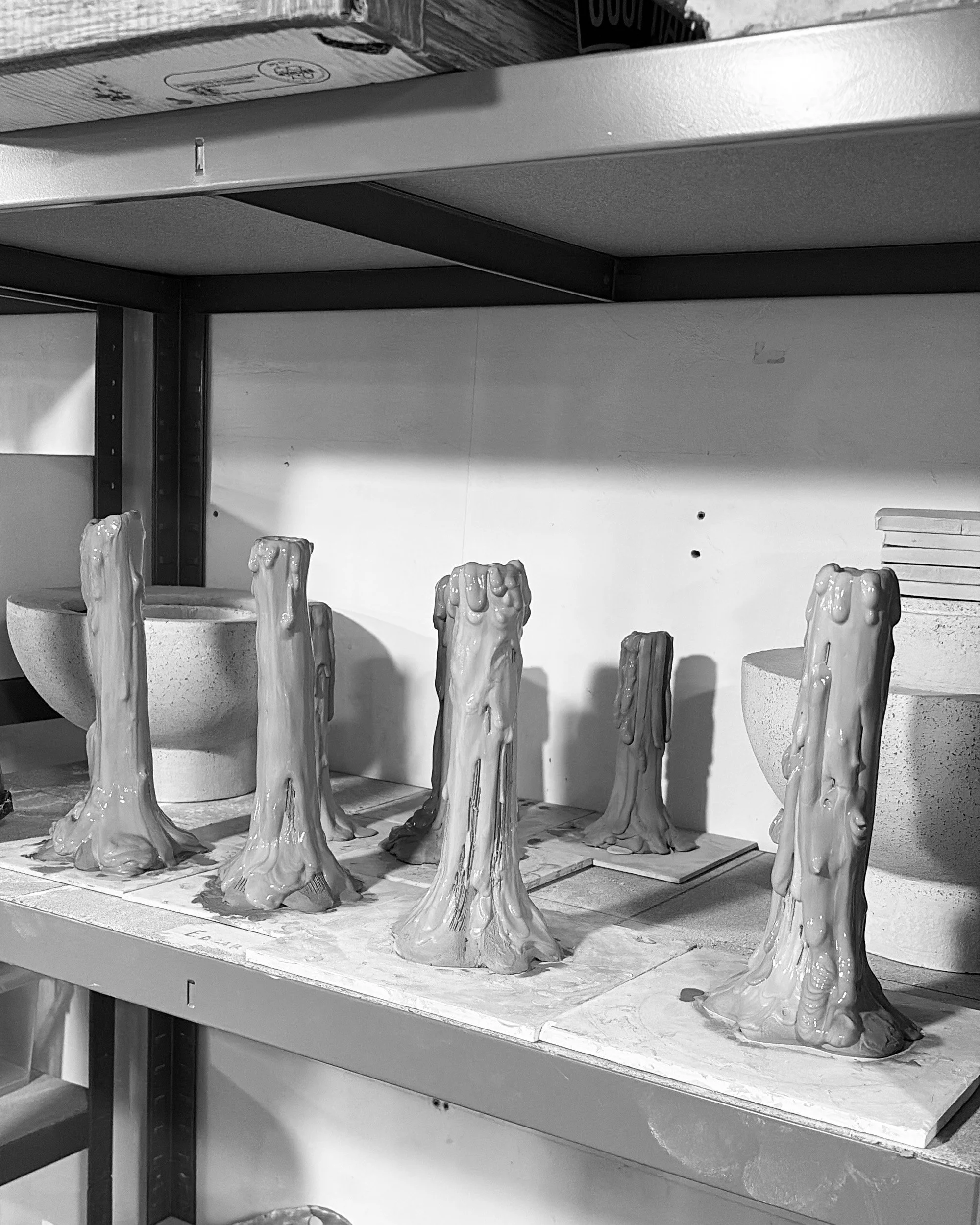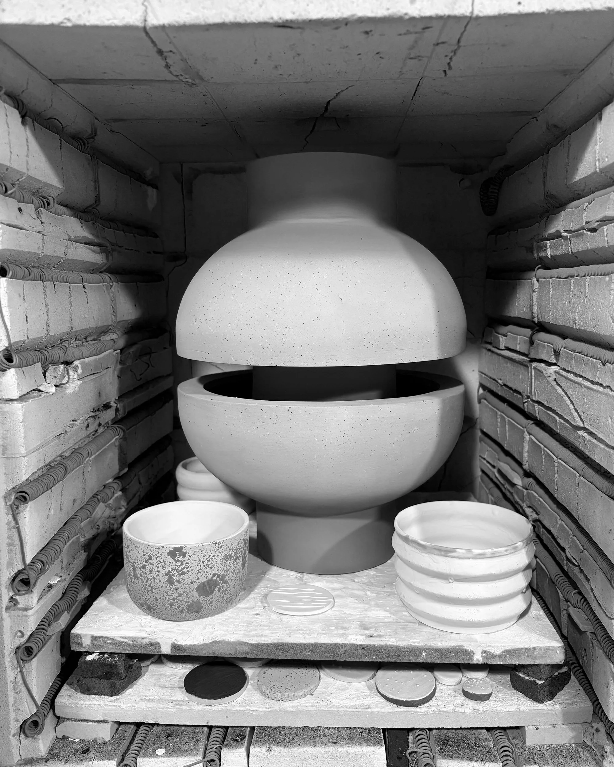 Cada creación en HEWE Studio comienza con el gesto más humano: las manos modelando el barro. A partir de ahí, la materia sigue un recorrido meticuloso: el curado natural, la cocción en hornos de alta temperatura y el acabado preciso que revela texturas, colores y formas únicas.